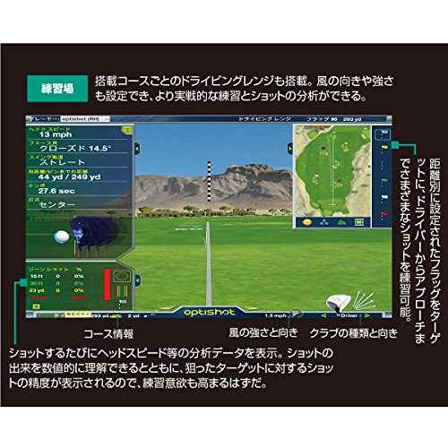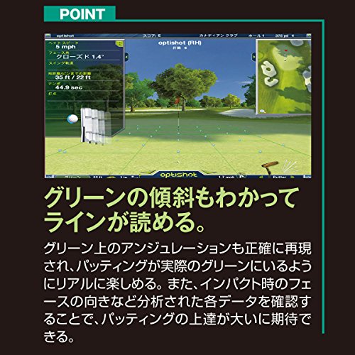optishot2は、今まで同等の製品ではなし得なかった、美しいグラフィック表示と素早い応答性が最大の特徴です。バーチャルコースや、ドライビングレンジでの練習モードと、4名までのラウンドモードがあり、様々なシーンに対応しております。ウインドウには、ヘッドスピード・フェース角、スイングパス、飛距離などが瞬時に表示され、その正確性には、他の追随を許さないコストに余りある性能と評価を頂いております。また、ゲームにおけるルール、天候やグリーンスピード、ラフの抵抗、カスタムクラブセッティングなど調整項目も微細ながら簡単に変更可能!!嬉しいことに、スポンジボールでも測定可能なことから、設置場所を選ばずクラブが振れるスペースさえあればどこでもPLAYをお楽しみいただける設計となっております。Optishot2はインドアでのショット練習やお仲間とのバーチャルラウンドをお楽しみいただける最適なマシンです。Feature