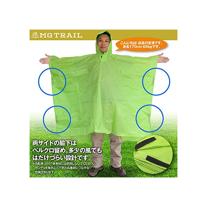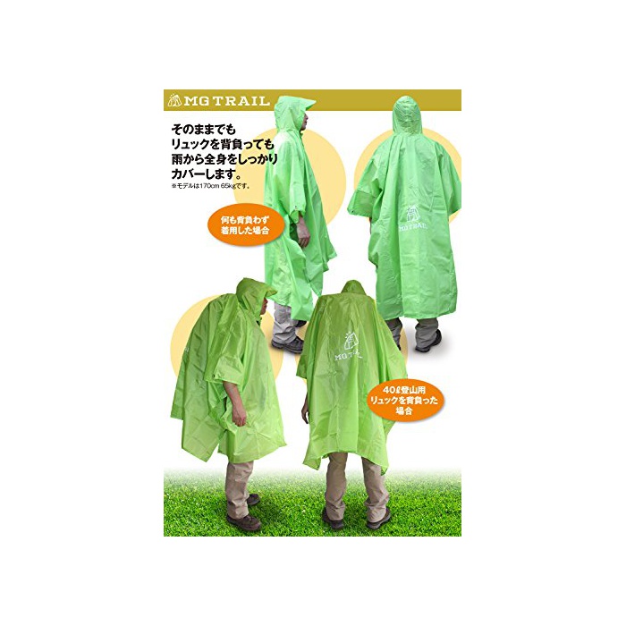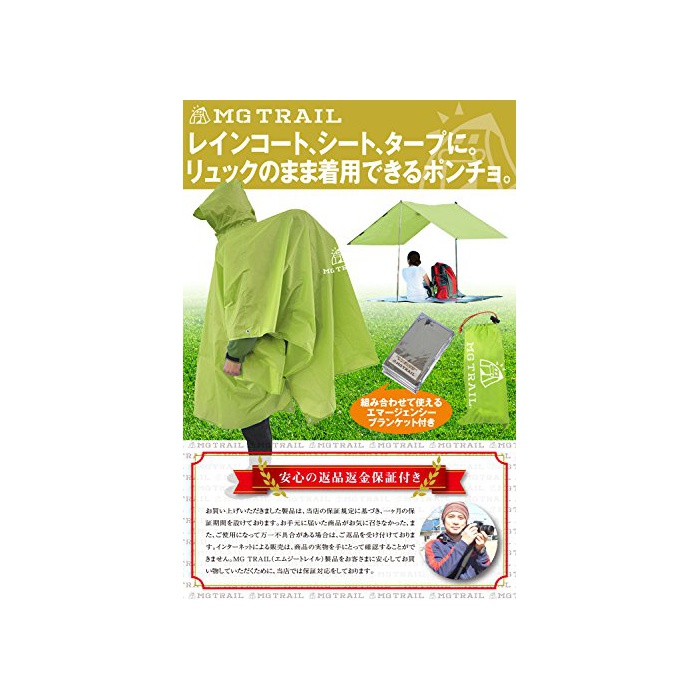 원본상품명: 【MG TRAIL】エムジトレイル レインコトシトタプキャンプトレッキング登山時の雨具アウトドアフェスでも活躍リュックを背負ったまま着用できる 携ポンチョ 防寒シト付(グリン)