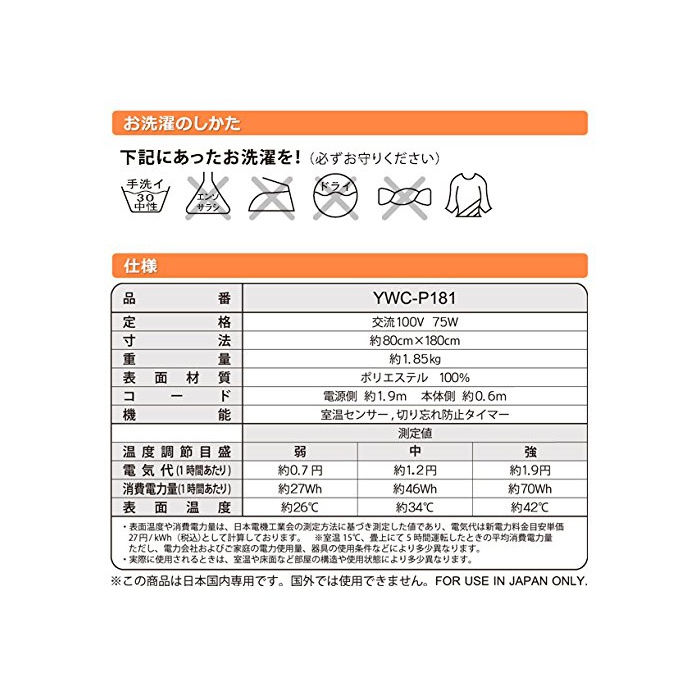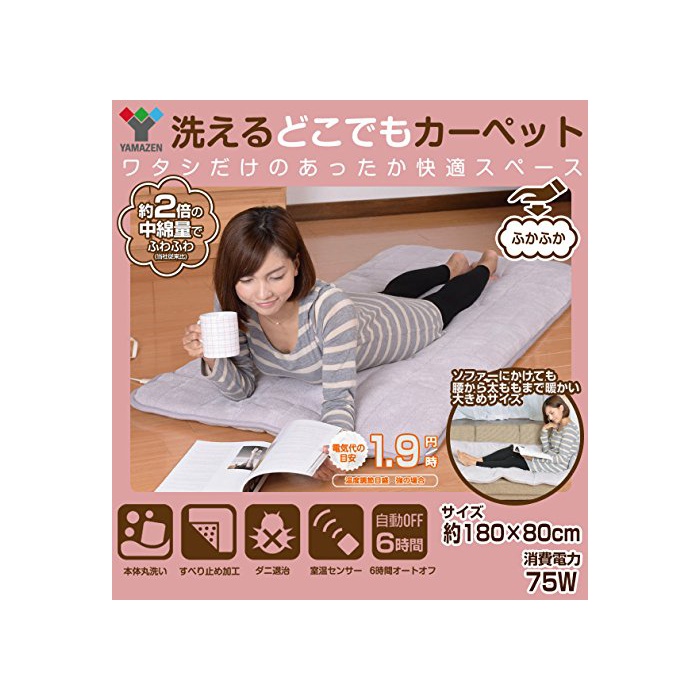 원본상품명: 山善(YAMAZEN) ふかふか 洗えるどこでもカペット(180×80cm) マイクロファイバ仕上げ 室センサ付 グレ YWC-P181(GY)