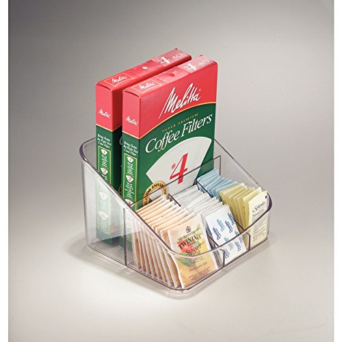 InterDesign Linus Coffee Supply Organizer for Filters, Beans, Sugar, Creamer, Tea Bags - Clear