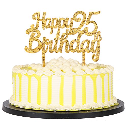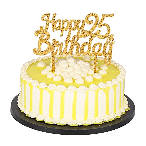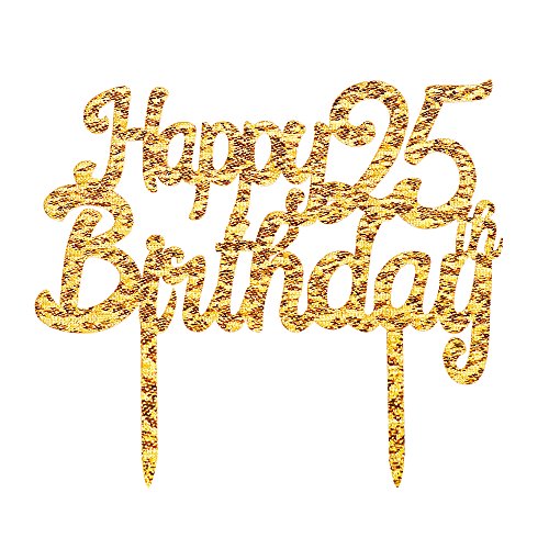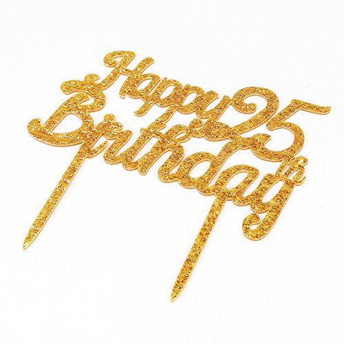 Gold Glitter Acrylic Happy Birthday 25th Cake Toppers,Party decor Decorations(6.2-inch)