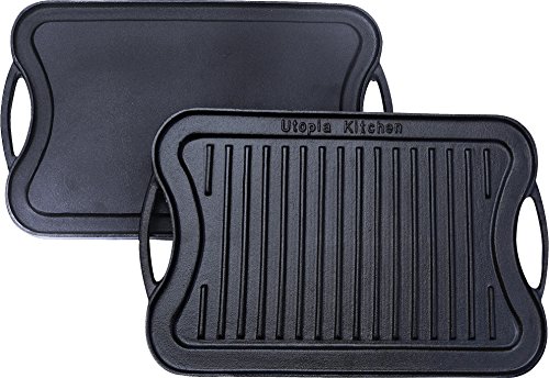 -. Title : Cast Iron Reversible Grill Griddle (New Design) 17 x 10 inches by Utopia Kitchen
