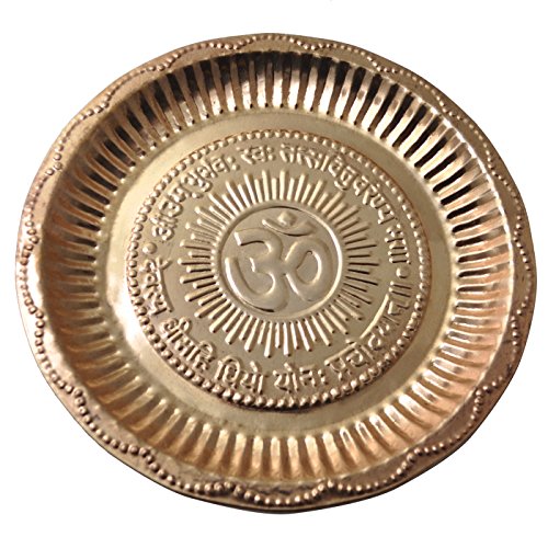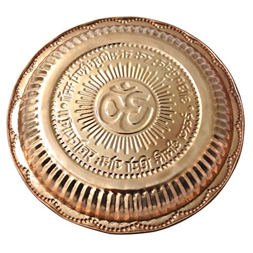Dakshcraft Traditional India Pure Copper Puja thali with Om Symbol & Gayatri Mantra, (Dia 8.74 inch)