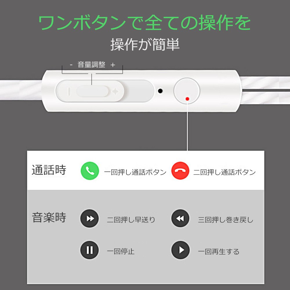 【多機能ボタン・マイク付き】マルチファンクションボタンにより電話応答、電話終了、音楽再生/停止、曲送り/戻り等の操作することができます。そして、マイクが内臓されて装着しながら自由に音楽を楽しまられますし、ハンズフリー通話も対応できます。