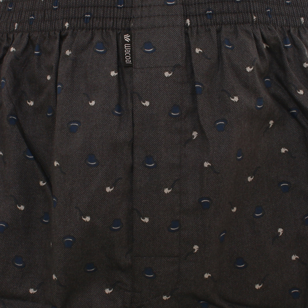 멜란지 느낌의 빈티지한 그라운드에 중절모 나염이 프린트된 감각적인