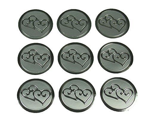 100 Silver Double Hearts Print Wedding Round Envelope Seal Stickers 1 inch Diameter