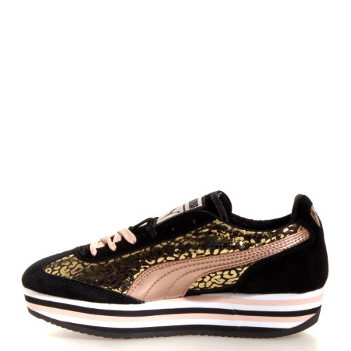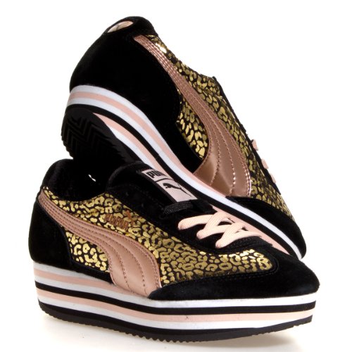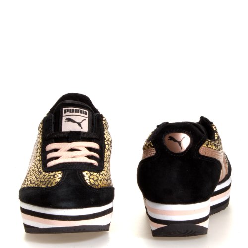 Studio : PUMA Publisher : PUMA Binding : Apparel Product Description Show off your style while staying comfy. This cute sneaker by Puma features a gold leopard printed upper with rose gold logo and layered 1 1/2 inch sole. Interchangeable laces allow you to choose from black or pink to tie up this flashy silhouette. 0