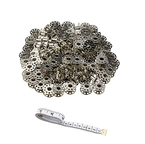 SummerHome 100pcs 0.83" Diameter Sewing Machine Metal Empty Bobbins with Soft Ruler For Brother Janome Singer Toyota Janome