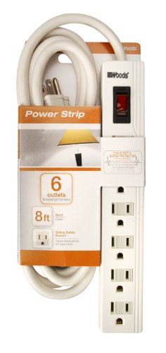 Woods 41404 6-Outlet Power Strip with 8-Foot Cord, White