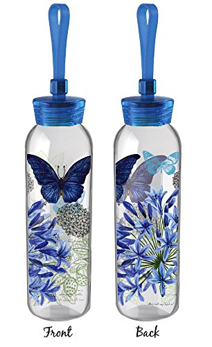 Cypress Home Blue Floral Study Double Sided Decal Glass Water Bottle, 18 ounces