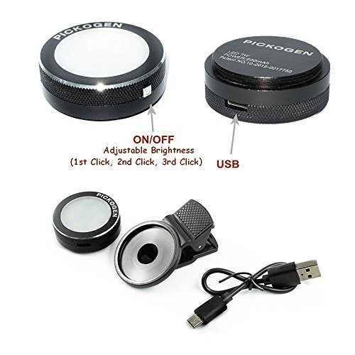 RedHoney Pickogen Mini Clip-On LED Flash Adjustable brightness Provide 3 brightness levels to meet different shooting needs.Use the adjustable dimmer switch to change up the brightness and quality of your photos and videos. Easy use Simple for creative lighting. Easily mount on your phone with the headphone plug or clip, or handheld in any angle. Convenient Tiny, portable and practical. You can take it anywhere and shoot everywhere. Professional it provides the same daylight color temperature as popular professional xenon flashes, so you get natural-looking skin tones, the right depth, and soft shadows. Adjustable brightness take effect and soft and beautiful Multi-purpose It can be used separately as an arbitrary source. It can be used as a simple flashlight or a small emergency lamp, taking photo is no longer an issue at night. Compatible For any smartphones or any devices that needed Light .High quality Metal material is incomparable other plastic products. See a dramatic improvement in the quality of all your photos and videos. "Why use fill light" Compared to digital cameras, mobile phones or Tablet can share pictures upload to the Internet immediately. But there is a biggest disadvantage: low light shot effects in dark environments. With this fill light, Less noise when taking pictures in dark environments and so easily to get natural light.Feature
