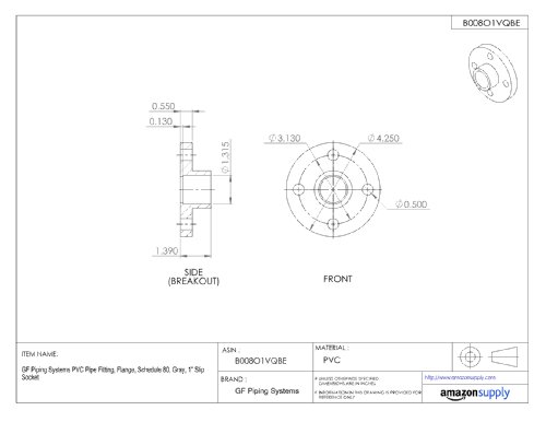 GF Piping Systems PVC Pipe Fitting, Flange, Schedule 80, Gray, 1" Slip Socket