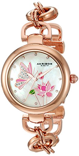 Akribos XXIV Women's Swarovski Crystal Landscaped White Mother-of-Pearl Dial with Rose-Tone Chain Link Bracelet Watch AK934RG