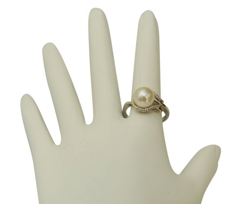 -. Title : 8.5-9.0mm Akoya Cultured Pearl & Diamond Willow Ring in 14K Gold