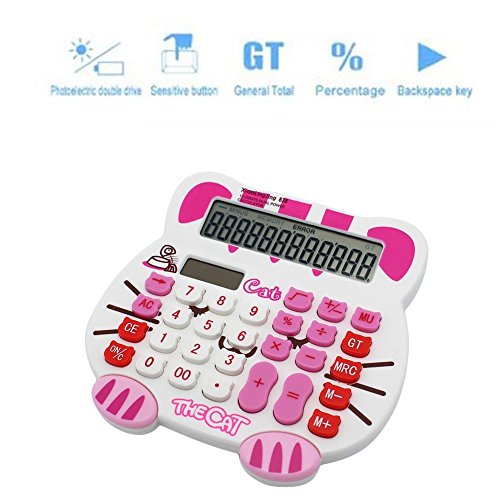 Loghot Adorable Creative 12 Digits Solar Dual Power Cartoon Cat Shape LCD Display Desktop Calculator with Big Screen White