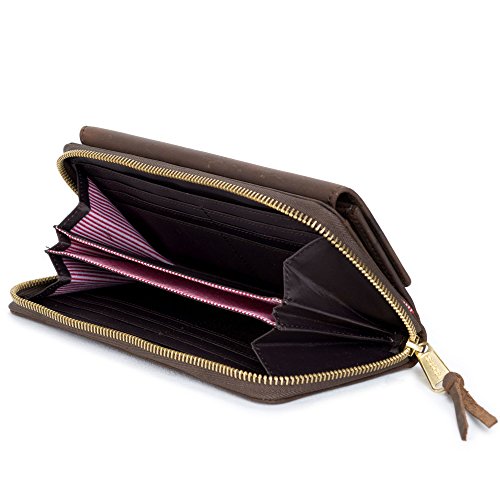 -. Feature : Full grain leather with debussed logo / Signature striped fabric liner / Multiple card slots and a currency sleeve / External coin pocket / Mobile phone slot (up to iPhone 6 plus) / One exterior pocket. Three interior slip pockets , and 12 card slots