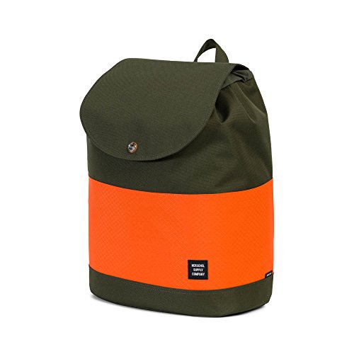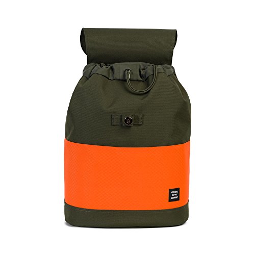 The design driven Reid backpack is equipped with a traditional drawcord cinch closure hidden beneath a rounded top flap.