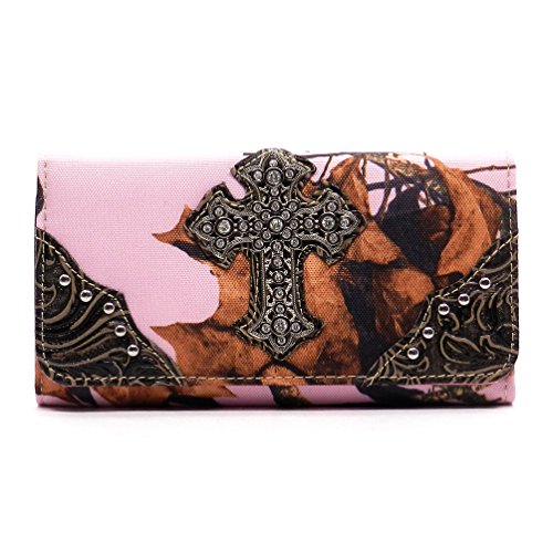 -. Brand : Mossy Oak -. Color : black -. Department : womens -. Feature : Canvas with print / Push-button closure / Silver-tone hardware / MOSSY OAK Wallet / L 7.5" X H 4" X W 1" -. Model : MT1W0345A -. PackageQuantity : 1 -. ProductGroup : Shoes -. ProductTypeName : HANDBAG -. Size : Small -. Title : MOSSY OAK Western Cross Camo Trifold Checkbook Wallet
