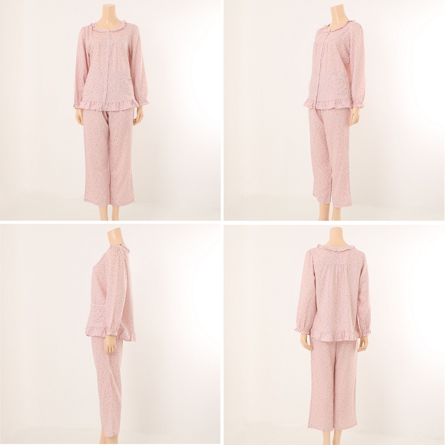 은은한 컬러감의 핑크톤으로 고급스러운 꽃송이와 도트 프린트의 조화가