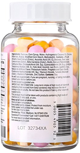 -. Binding : Health and Beauty -. Brand : Centrum -. EAN : 0300054905925 -. Feature : Includes B-Vitamins to help support daily energy needsContains antioxidants to help support the immune system / Centrum -. IsAdultProduct : 0 -. Label : Centrum -. Manufacturer : Centrum -. Model : DFD-1012 -. MPN : pu120 -. NumberOfItems : 1 -. PackageQuantity : 1 -. PartNumber : pu120 -. ProductGroup : Health and Beauty -. ProductTypeName : HEALTH_PERSONAL_CARE -. Publisher : Centrum -. Size : 120 -. Studio : Centrum -. Title : Centrum Multivitamin Adult Chews, 120 ct -. UPC : 300054905925