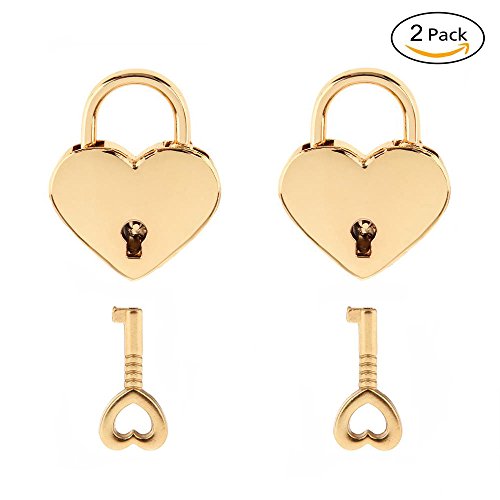 Warmtree Small Metal Heart Shaped Padlock Mini Lock with Key for Jewelry Box Storage Box Diary Book,Pack of 2,Gold