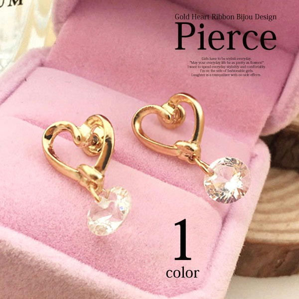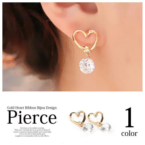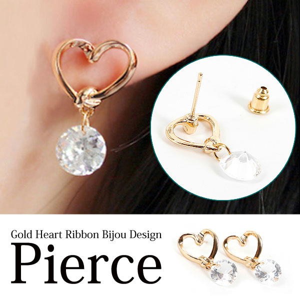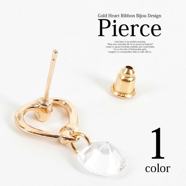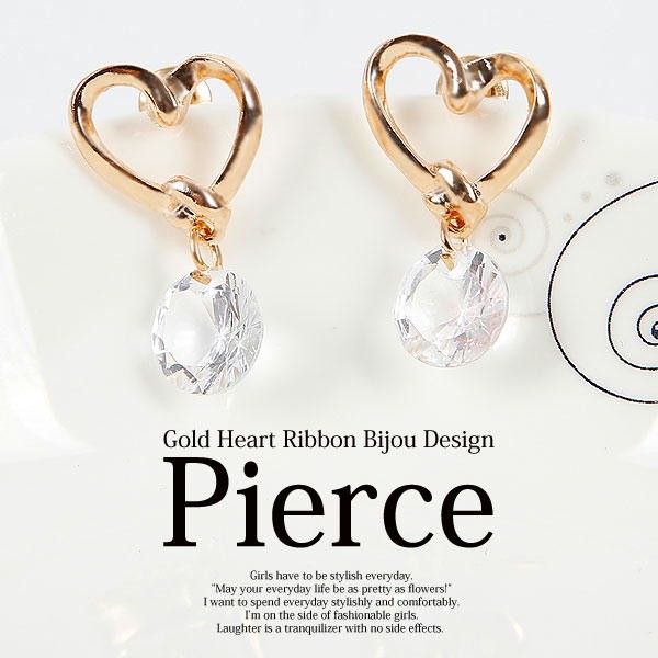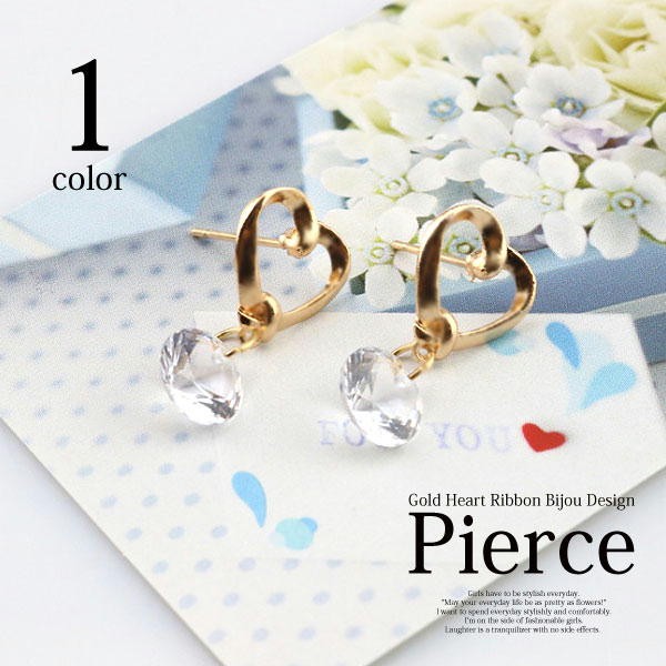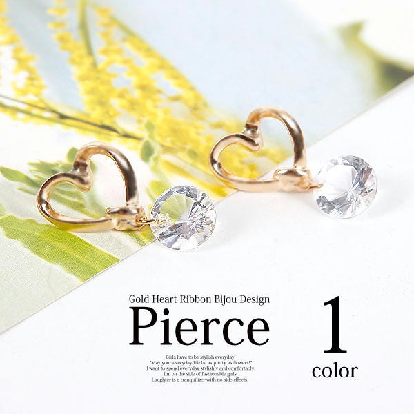 女性らしいハートがキュートでダイヤモンドカットのビジューがオシャレなピアス!大人カワイイ雰囲気がでるピアスです。