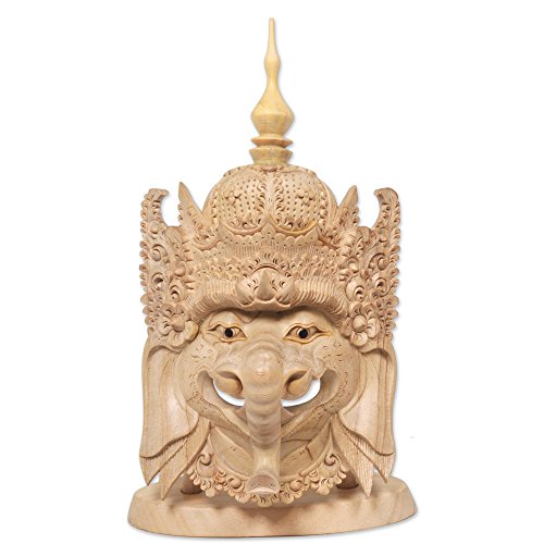 NOVICA 'Ganesha'S Floral Crown' Wood Mask