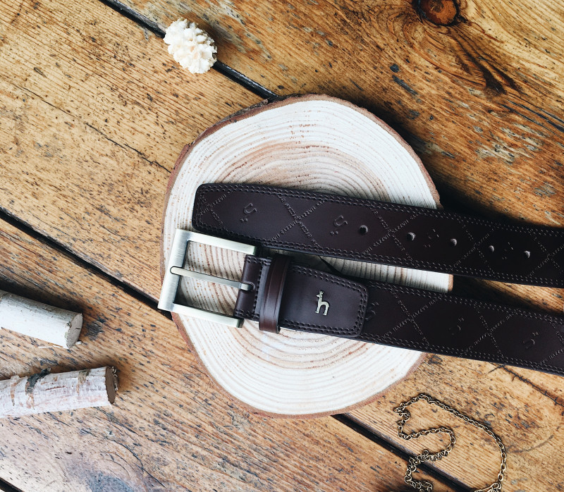 [HAZZYS ACC] 브라운 로고 음각 벨트