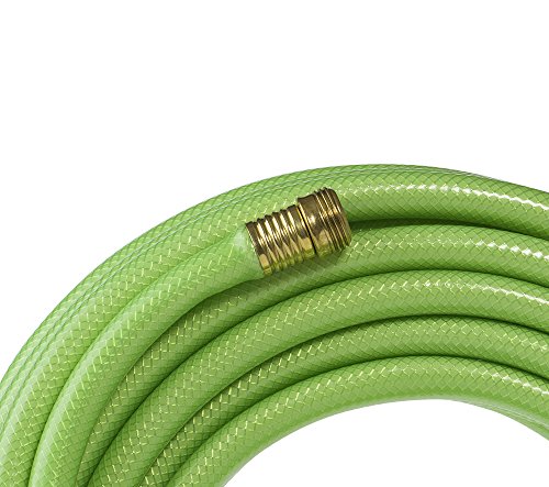 This green water hose’s lightweight design and material makes it easy to handle while you work around the garden
