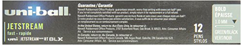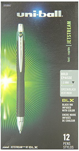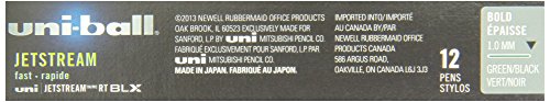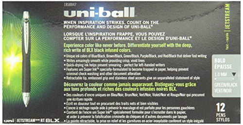 -. Title : uni-ball Jetstream RT BLX Retractable Ball Point Pens, Bold Point, Green/Black Ink, Pack of 12