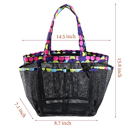 - ★Portable and lightweight mesh shower tote, hang the shower tote caddy over the door, showerhead or put it on a shower stand in the corner.