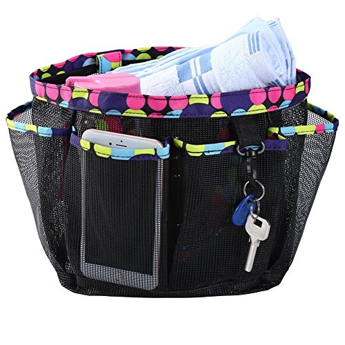 Portable Mesh Shower Caddy Tote, Large College Dorm Shower Organizer with Key Hook and 8-Pocket, Quick Dry Hanging Toiletry and Bath Organizer Bag, Black