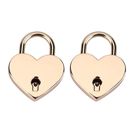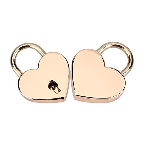 2 Set Heart Shape Padlock, Rose Gold Heart Love PadLocks With Key for Luggage Handbag Diary Valentine's Day Gift