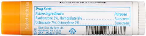 -. Binding : Misc. -. Brand : Kiss My Face -. Label : Kiss My Face -. Manufacturer : Kiss My Face -. ProductGroup : Beauty -. ProductTypeName : BEAUTY -. Publisher : Kiss My Face -. Size : 2 pack -. Studio : Kiss My Face -. Title : Kiss My Face Sport Lip Balm SPF 30, 0.15 Ounce