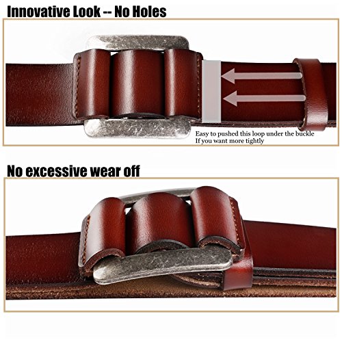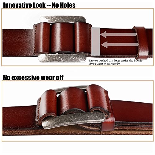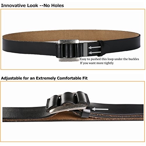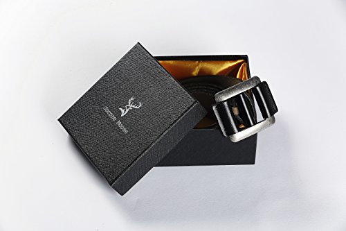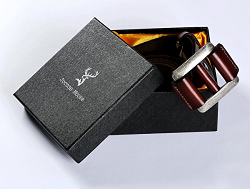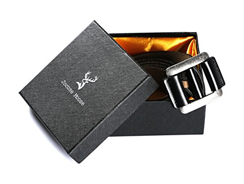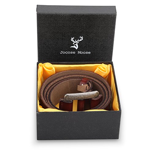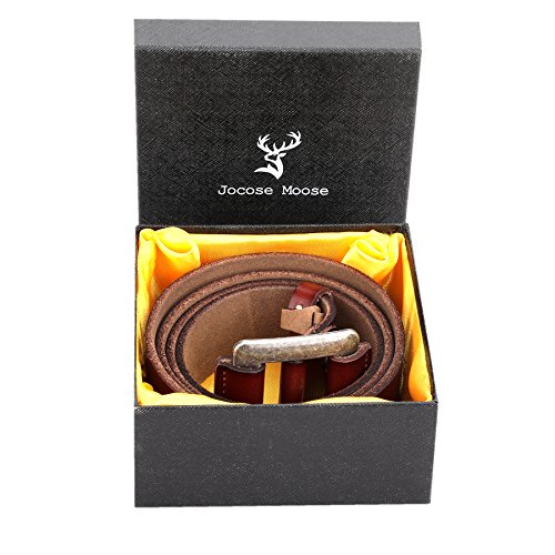 About Jocose Moose Men's Leather Belts THE BEST BELT YOU'LL EVER OWN. Have you ever had an excessive meal and felt your waist is "growing"? Well, no more worries,?It is very easy to adjust sizes up or down and nobody will notice. Jocose Moose Innovation Belts Our belts is a great looking innovative belt that is easy to wear and very comfortable. Made of the finest Leather to look amazing, does not wear off easily as it has no holes to stretch, there is no belt hangover. It is very easy to adjust and You don't need a buckle, but you can wear it as an accessory and we have different options to choose from. No-Slip Design Most friction-based belts have to be re-tightened throughout the day, but our belts holds firm all day long. Simply thread the strap in and out, and it locks in place. Done. Durable Don't take care of this belt. It will take care of you. J Moose belts has an ideal combination of strength, hardness, and unparalleled resistance to corrosion.It's probably strong enough for your pants, too. Features - Sleek and clean, and provides a perfect fit for everyone - Other belts will loose easily,but we are different ,you can just put the leather buckle close to the buckle,it can not slip even after dinner - Just remove the leather buckle, and you can put the belt easily out of the buckle. - Adjustable, Lightweight, Comfortable Pakage Dimension : 5.5 x 5.5 x 2 Inch What it Suits for - Perfect for casual, classical, vintage, always perfect match for most pants, jeans, work trousers, suit trousers, etc - Enclosed in a beautiful, attractive gift box ,suitable as a gift for friends,colleague and your family.