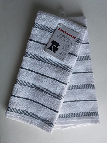 KitchenAid 2 Royal Silver Grey Stripped Towels