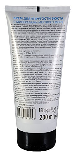 Bust contouring cream Natural Dead Sea product 200ml (6.76 oz) MADE IN UKRAINE INGRIDIENTS Aqua, Ethylhexyl Cocoate, Algae Extract, Glyceryl Stearate, Glyceryl Stearate, PEG-100 Stearate, Cetearyl Alcohol, Cyclopentasiloxane, C30-45 Alkyl Cetearyl Dimethicone Crosspolymer, Potassium Cetyl Phosphate, Ammonium Acryloyldimethyltaurate/VP, Copolymer, Phenoxyethanol, Pullulan Methylparaben, Ethylparaben, Propylparaben, Butylparaben, Parfum, Camellia Sasanqua (Camellia) Seed Oil, Dead Sea Salt PEPHA-TIGHT CAMELLIA SEED OIL Bust Firming Cream The cream is designed for skin chest tightens, firms and smoothes, prevents skin aging. Similarly elaborate cream formulation is based on the interaction of extracts of red algae, green coffee, pullulan and butter beans that are part of. They moisturize the skin and tone up, significantly reduce the number of wrinkles in the neck and chest. Camellia oil softens the skin and regulates inflammation. Sea salt helps to improve the appearance, enhances protsessregeneratsii cell provides rapid absorption of mineral elements, elasticity. The cream has moisturizing properties. Helps women to keep fit and returns the bust beautifully contoured shape. Promotes active skin rejuvenation. It is supple and silky. HOW TO USE Apply to clean, dry skin, neck and chest avoiding the nipples.