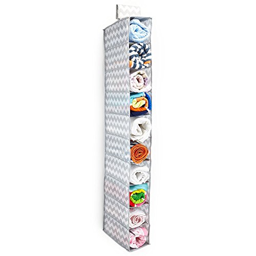 Home Intuition Hanging Shoe Organizer with 10 Shelves, Grey Chevron