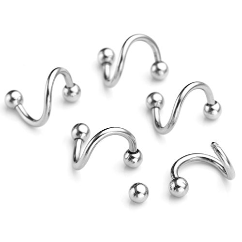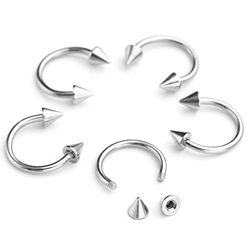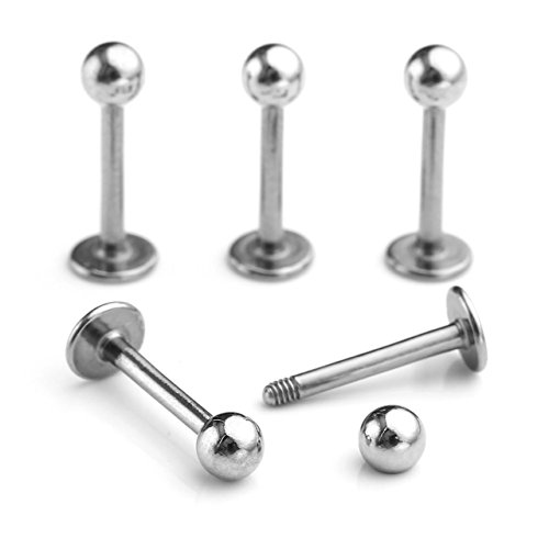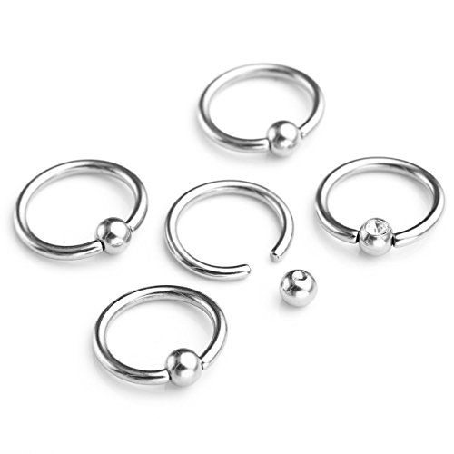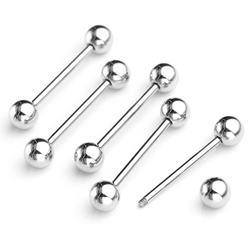 PiercingJ Multi Piercing Set 60x 316L Chirurgenstahl Korperpiercing Stud Barbell fur Zunge Nase Ohr Lippe Brustwarzen Augenbrauen Helix Tragus Knorpel Ring Ringe Multizweck Silber