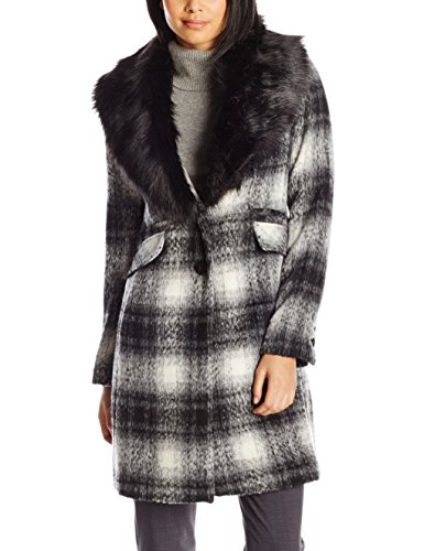 Laundry Women's Plaid Wool-Blend Coat with Faux Fur Collar