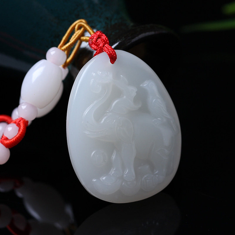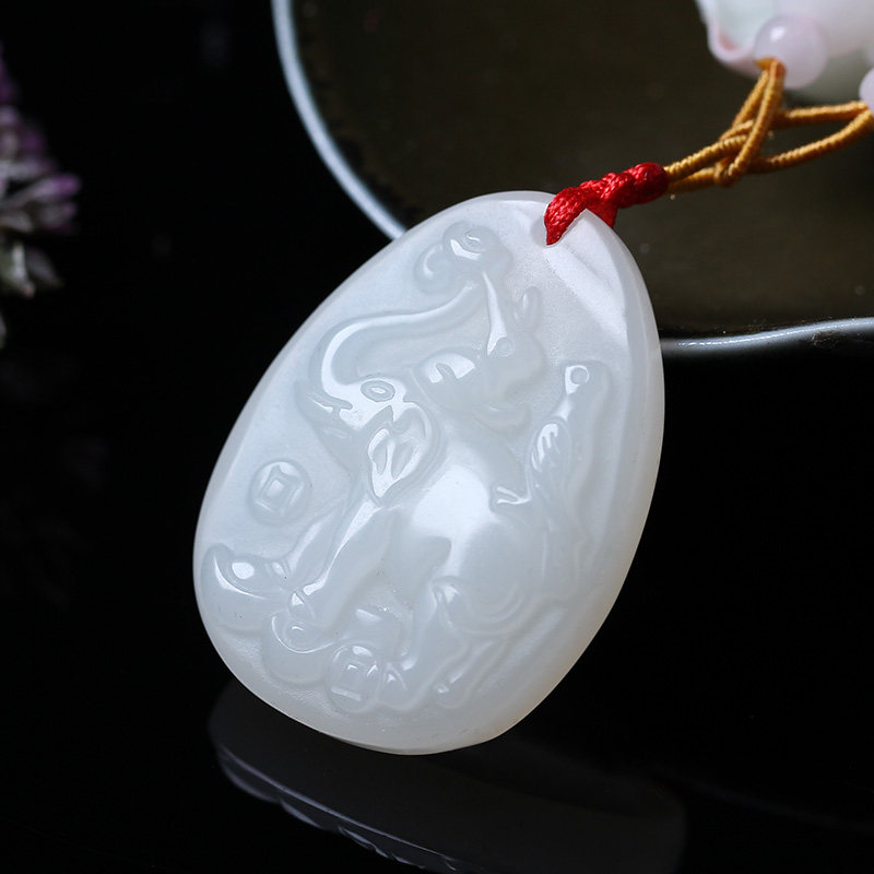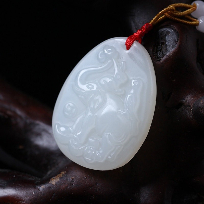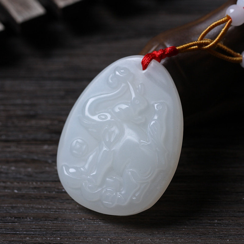 开光吉象采珠玉坠吊坠生肖牛吉祥物男女款
