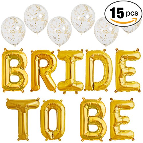 -. Feature : 15 PIECE BACHELORETTE PARTY BALLOON KIT: This set includes the all the letters for your BRIDE TO BE banner and 6 matte gold confetti balloons. / QUALITY PREMIUM 16" MYLAR BRIDE TO BE BALLOONS: These mylar balloons do not come inflated and the deflated letters are odd shaped or may look like another letter until they are blown up! / SET OF 6 MATTE GOLD CONFETTI INSIDE A CLEAR BALLOON: These balloons are helium quality and some assembly required in putting confetti into the balloons. Instructions Included.. / INCLUDES: Instructions in/on packaging to inflate balloons and 1 straw (to inflate mylar balloons) No String Provided - Balloons have tabs on the top and bottom for stringing or tying. To conceal tail, simply use a small piece of tape. / A BACHELORETTE PARTY SHE WON'T FORGET!: Click "Add to Cart" now! This Bride To Be Balloon set looks great in photos!