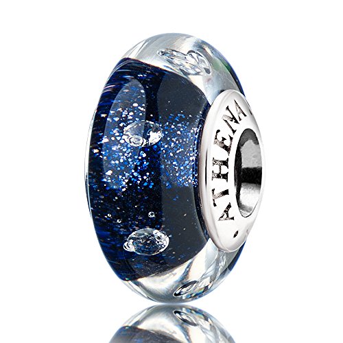 ATHENAIE Murano Glass 925 Silver Core Blink Dark Blue Sand Clear CZ Charm Bead