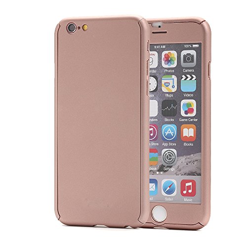 iPhone 6S Case, Pandawell™ 360 Degree All-round Full Body Protection Hard Slim Case with Tempered Glass Screen Protector for Apple iPhone 6 / 6S 4.7 inch (Rose Gold)