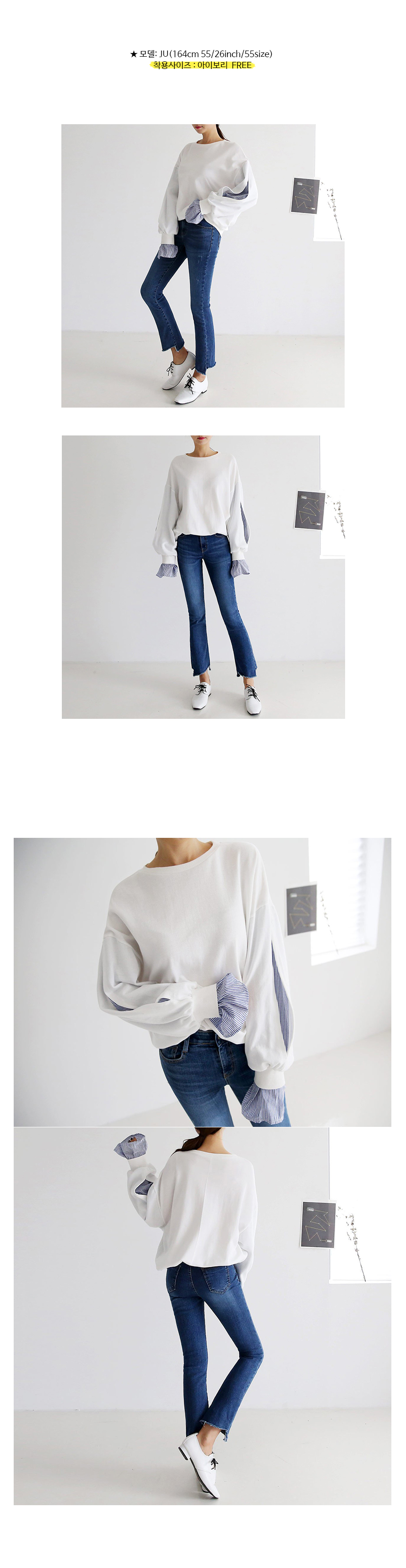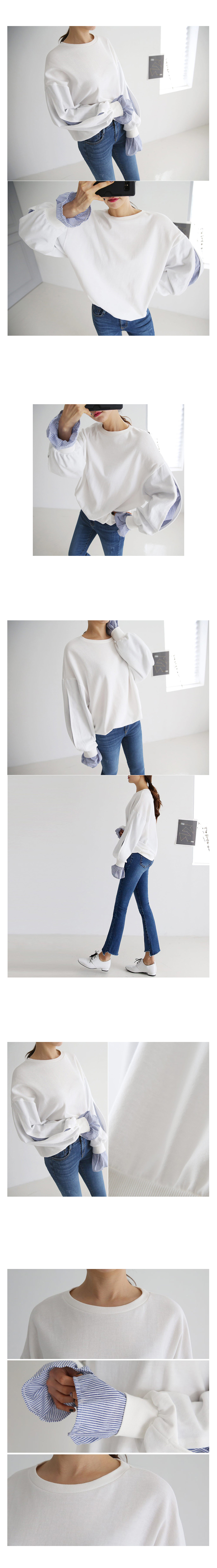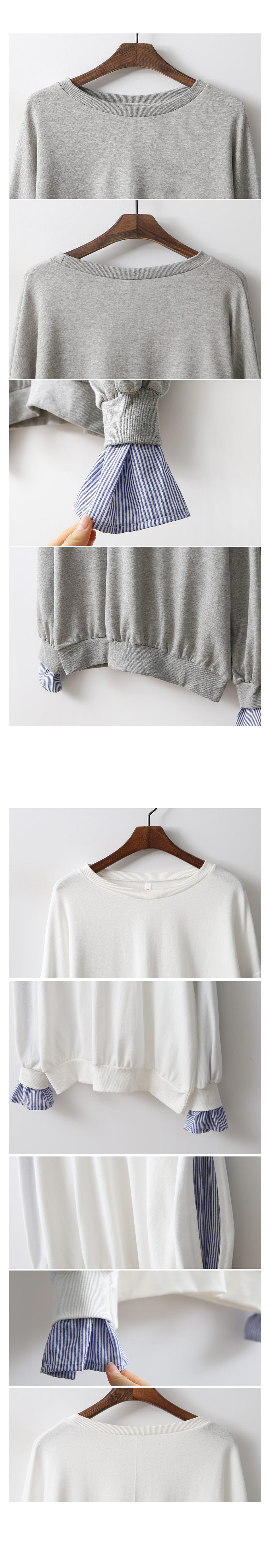 편안하게 떨어지는 내추럴 핏의 기본 맨투맨 스타일에 소맷단과 트임 사이로 스트라이프 배색 안감을 넣어 독특한 포인트를 준 아이템이에요 움직일 때마다 소매 트임 사이로 보이는 스트라이프 패턴은 소맷단에 퍼지듯 디자인된 커프스 느낌으로 마무리해 깔끔하고 멋스럽답니다 심플한 하의에 편안한 룩으로 코디하기 좋은 맨투맨이에요 색상은 아이보리, 그레이 사이즈는 FREE44~66반
