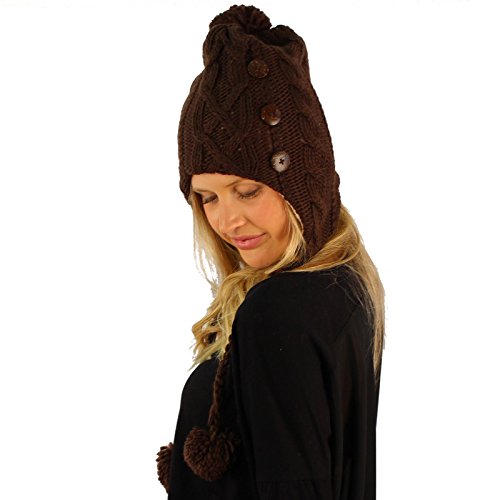 New Winter Ladies Girls 3 Button Soft Fully Fleece Lined Braided Knit Pom Pom Trooper Trapper Pilot Helmet Aivator Hunter Ski Snow Skate Hat Cap with earflaps with Pom Poms Super warm with soft fleece lining with knit braid design, pompom top and braided side tassels with pom poms. A must have trooper trapper this season. New redesigned comfort fit with soft fully lined fleece interior, braided chin strap, wear it up, wear it down. Comfortable fit, Great for all ladies and teens. Matching accessories in our store, scarves, earmuffs and gloves, booties etc.. ?Great for all outdoor activities. 0 |