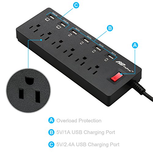 About FlePow Fire-resistance Power Strip: 6 AC 3-prong grounded power strip with 6 charging ports, it is perfect design for your home or