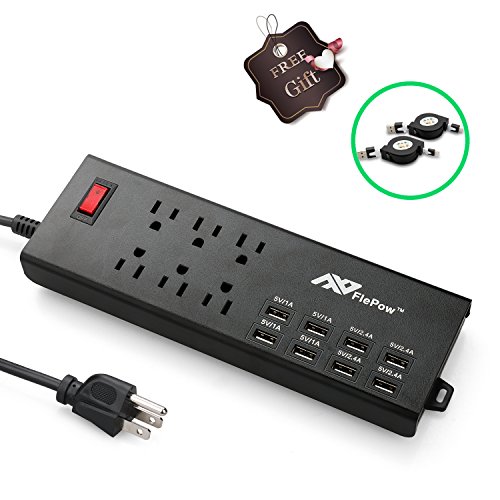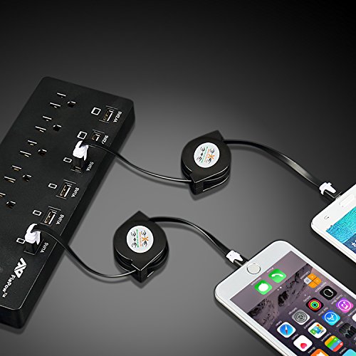 What You Get: FlePow multifunctional 6-Outlet power strip with 6-Port USB charging station, 1*8 Pin Apple Retractable Cable and 1*Micro USB Retractable Cable , 12-MONTH FlePow warranty & 30-DAY money back guarantee.