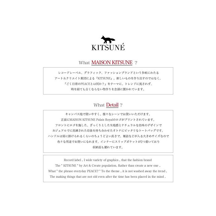 원본상품명: メゾン キツネ MAISON KITSUNE ショッピングバッグ キャンバス トト Shopping Bag PALAIS ROYAL キャンバスロゴトトバッグ FW15U835 カバン レディ