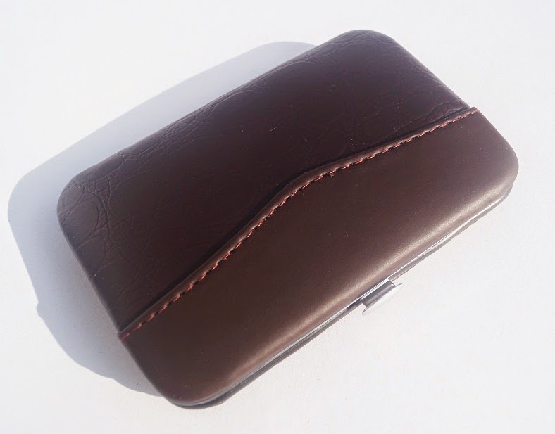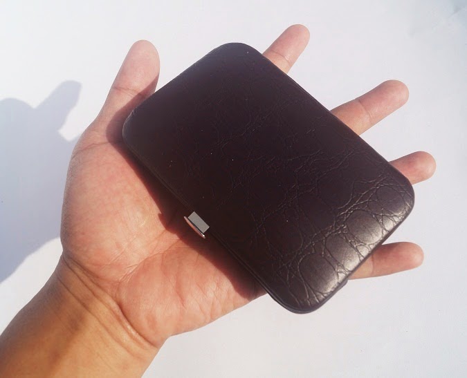 Manicure Set ini tersimpan dalam wadah seperti dompet kecil terbuat dari kulit sintetis yang simpel dan praktis, cara buka dan tutupnya system Pock Off (pencet tombol kecil disamping untuk membuka). Ukuran dompetnya: panjang 12cm x lebar 7.5cm.